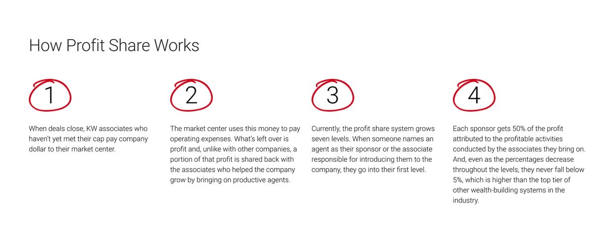 Profit Share is a program for U.S. and Canadian associates with zero risk and unlimited earning potential that rewards you simply for helping us grow. Profit share is a cooperative wealth-building tool where market center owners invest in the people who helped the office grow. Rather than shaving cash off the top of every deal, owners share profits to create a successful and sustainable business that takes care of its people even after they cease production.